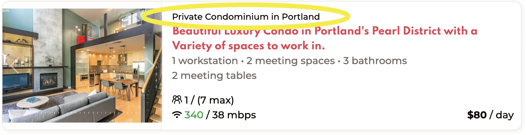 You can easily find all of our private Radspace options by toggling this feature under filters. This will show you all of the Radspaces that are completely private to you and your team. In most cases, these will be whole houses or apartments that you’ll rent for the day, with a no-contact check-in process. Chat with your host to learn how to check into the space and gain access.